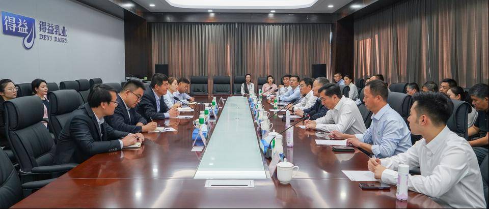 11月1日,淄博市供销合作社联合社党委书记、理事会主任申佃军带领市供销社干部职工一行莅临得益乳业实地考察,调研企业全产业链重点项目建设情况并召开座谈会,得益乳业董事长王培亮陪同调研并出席座谈。