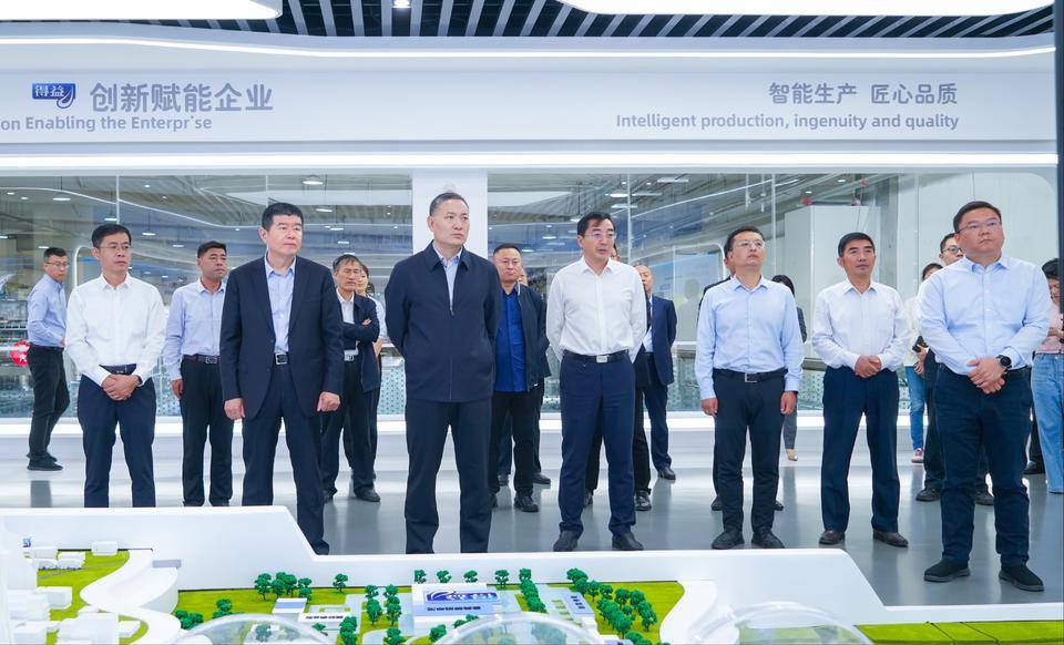调研期间,申佃军一行来到得益乳业新建的中国低温奶智造标杆基地,参观了得益乳业自动化前处理车间、全产业链微缩景观沙盘、大数据平台、智能中控室和技术专利荣誉墙等。