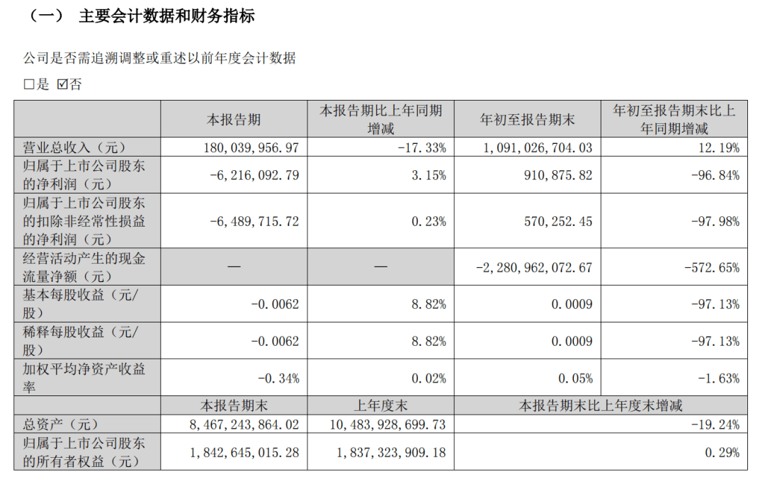 弘业期货近期发布的三季报显示,该公司前三季度实现营收约10.91亿元,同比增长12.91%;归属上市公司股东净利润约91.09万元,同比下降96.84%;实现扣非净利润约为57.03万元,同比下降97.98%;基本每股收益0.0009元,同比下降97.13%。