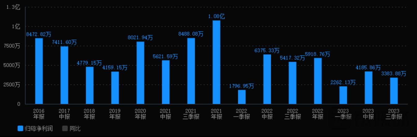 从前三个季度公布的数据不难发现,除了第一季度净利润同比取得了25.89%的涨幅外,2023年的中报和三季报都出现了营业收入和净利润的双双下滑,并且也创下了近几年的新低。