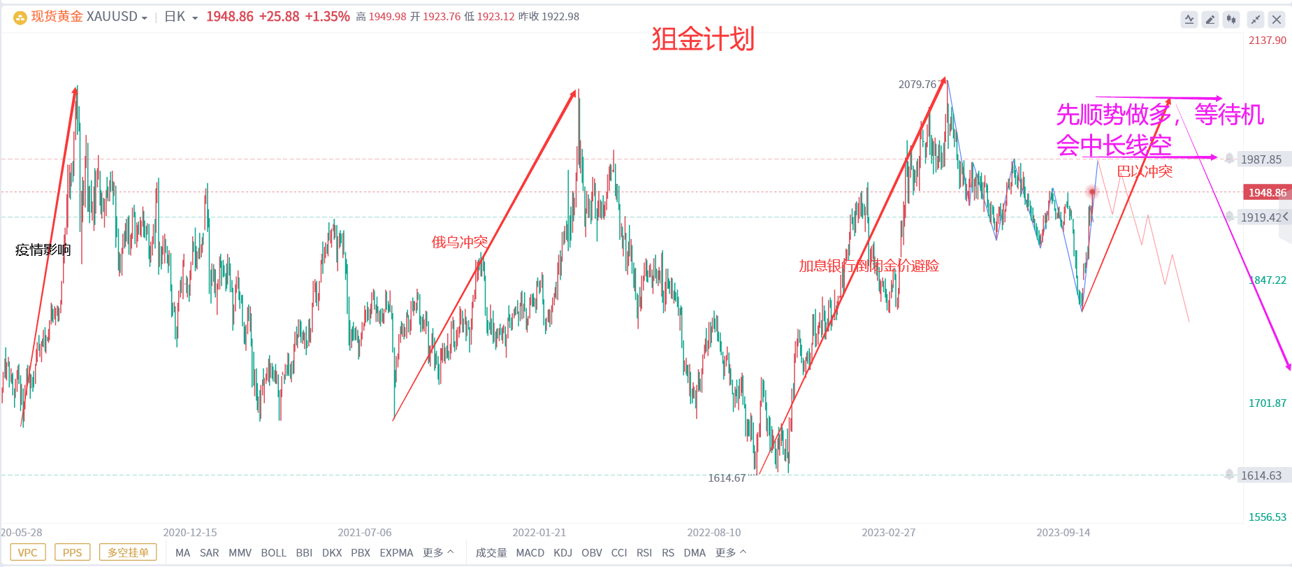 周四(11月2日)亚盘时段,现货黄金宽幅拉扯震荡;由于美联储维持利率不变,并且对其货币政策几乎没有提供前瞻性指引,黄金市场仍然面临压力。同时,由于巴以冲突停火的可能性较小,而对伊朗干预中东冲突的担忧仍然很高,因此黄金的整体前景仍然乐观。
