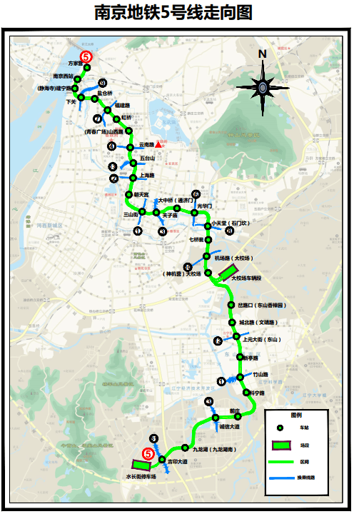 南京地铁5号线是南京主城区重要的纵向地铁轴线,起自吉印大道,止于鼓楼滨江,线路全长37.4km,全部为地下线,共设地下车站30座。