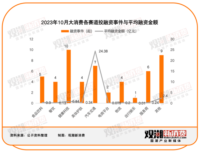 除去汽车行业,其他领域平均融资金额最高,约为2.4亿元。这其中包括一次2.5亿美元的巨额融资事件,由小黄鸭品牌产品产销商「小黄鸭德盈」于10月11日完成,投资方为沙特公共投资基金。