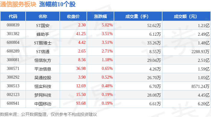 北向资金方面,当日通信服务板块北向资金持股市值为102.76亿元,减持0.71亿元。其中增持最多的是光环新网,增持了880.07万元。减持持最多的是梦网科技,减持了0.34亿元。通信服务板块北向资金持股变动明细见下表: