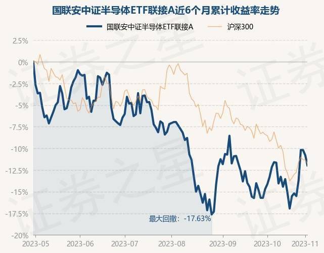 证券之星消息,11月2日,国联安中证半导体ETF联接A最新单位净值为1.6919元,累计净值为1.6919元,较前一交易日下跌1.32%。历史数据显示该基金近1个月上涨3.2%,近3个月下跌5.37%,近6个月下跌11.92%,近1年下跌2.44%。该基金近6个月的累计收益率走势如下图: