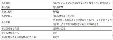 原标题:永赢中证沪深港黄金产业股票交易型开放式指数证券投资基金 增聘基金经理的公告
