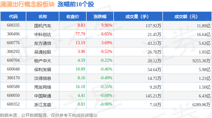 北向资金方面,当日滴滴出行概念股板块北向资金持股市值为163.3亿元,增持0.4亿元。其中增持最多的是中科创达,增持了0.4亿元。减持持最多的是用友网络,减持了0.23亿元。滴滴出行概念股板块北向资金持股变动明细见下表: