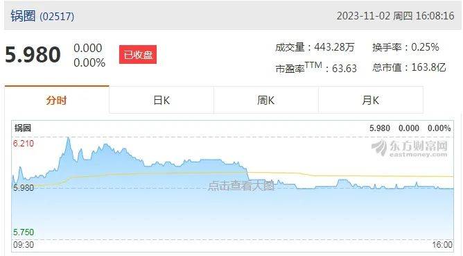 11月2日,成立6年的锅圈食品(上海)股份有限公司(简称“锅圈”),在港交所正式挂牌上市,股票代码为“02517.HK”,发售价定为5.98港元/股。截至发稿,锅圈市值为163.8亿港元。
