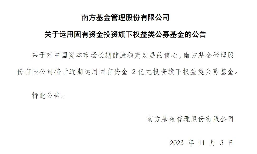 原标题:南方基金:2亿元自购旗下权益类基金