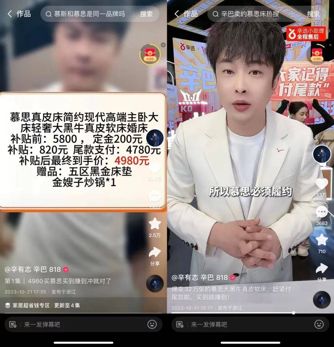 近日,慕思股份与辛巴合作不顺一事广受关注,辛巴在直播中称已销售量达 10 亿元,但厂家不想履约。