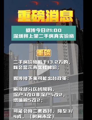 11月2日,深圳市场开始疯传,低于每平方米13.2万元的房源可以显示真实的业主挂牌价!
