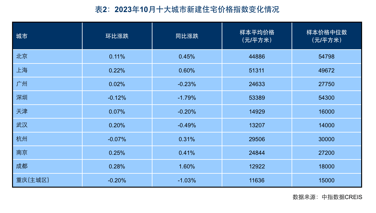 中指研究院指出,从市场表现来看,新建住宅方面,10月房企推盘量有所下降,受部分城市优质改善项目入市带动,百城新建住宅价格环比继续上涨。二手住宅方面,重点城市挂牌量持续增长,调控政策放松带动部分城市市场活跃度提升,二手房业主积极以价换量,百城二手住宅价格继续承压。