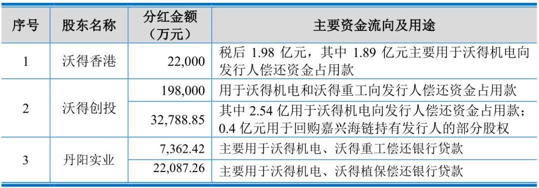 三、针对饱受质疑的沃得农机大额分红,审核阶段,监管层针对沃得农机的大额分红进行了多轮问询,沃得农机进行了详细回复,相关分红是具备合理性、合规性的。