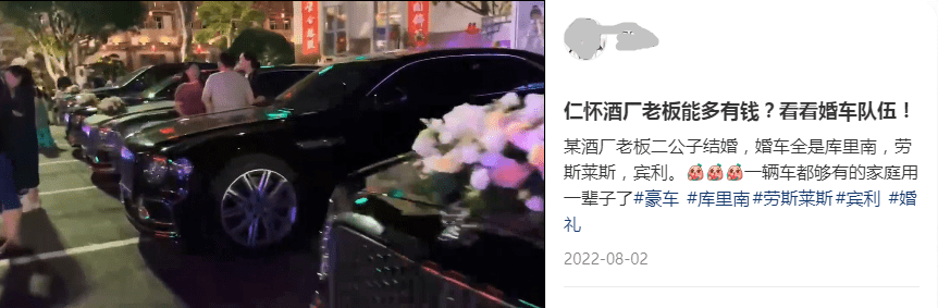 当地酒厂老板太多,家里的千金少爷们一办婚礼,就会出动全是豪车的婚车车队,开上这些大道,当地人说“不多不多,大型嘞一个月能看到两三次吧”。