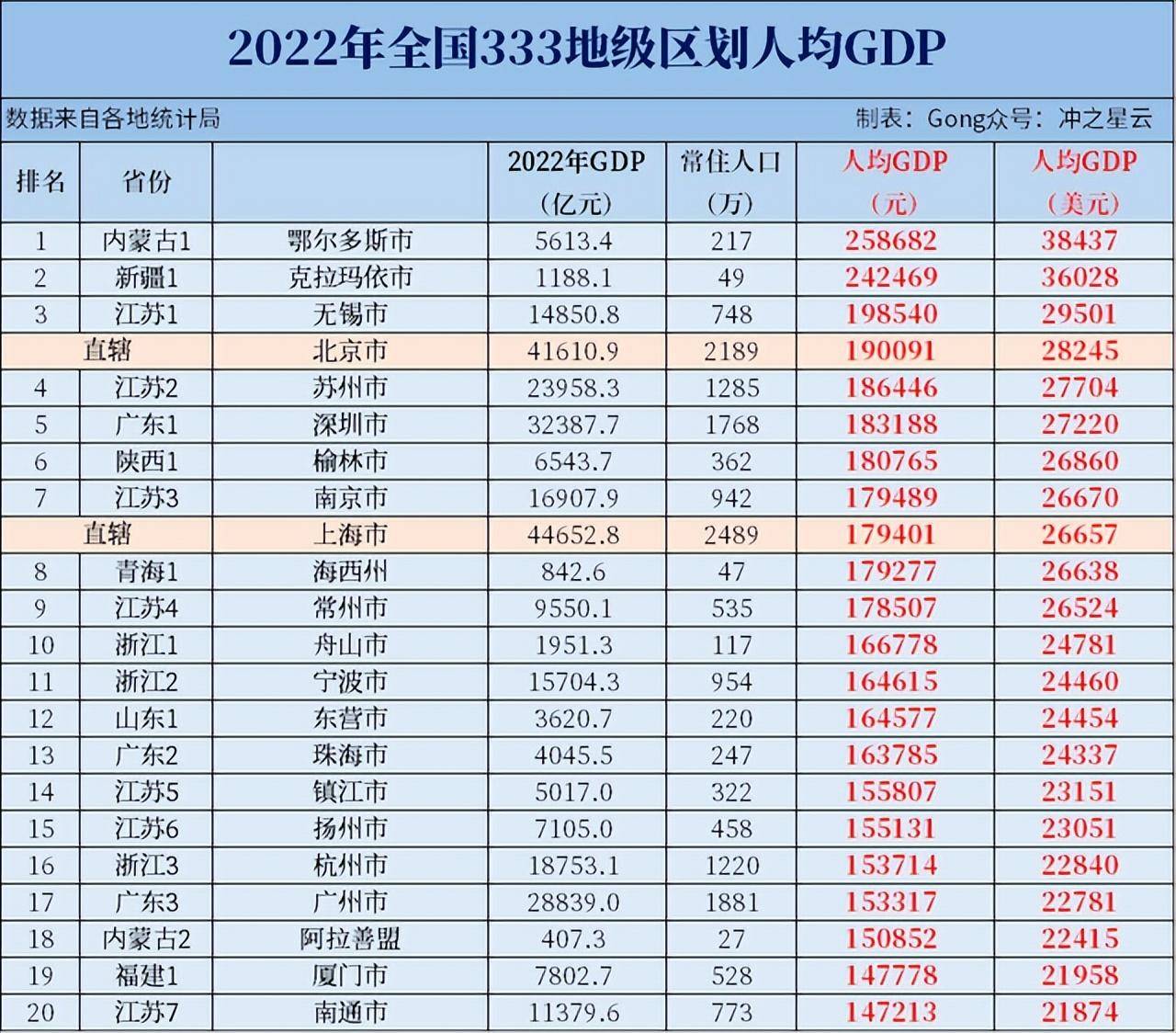 酒厂遍地带来了巨大的经济效应,中国城市人均GDP排名第一的是鄂尔多斯,25.9万,而仁怀市作为一个县,人均GDP是26.08万,遥遥领先所有的城市。