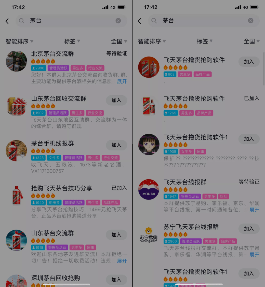 可不嘛,茅台的二级市场,比股市活跃多了,很多QQ群微信群,都是小型交易所: