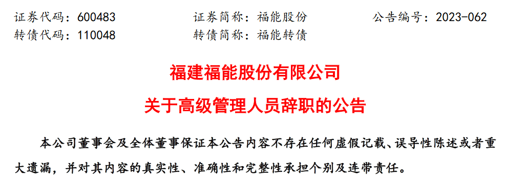 福能股份公告,因工作变动,周朝宝申请辞去公司董事、董事长等职务;程元怀申请辞去公司董事、副董事长等职务;叶道正申请辞去公司总经理的职务;郑声清、李东妙、江兴荣和陈文秦申请辞去副总经理的职务。辞职后,叶道正继续担任公司董事、董事会战略委员会委员职务;郑声清、李东妙、江兴荣和陈文秦继续在公司控股子公司任职。