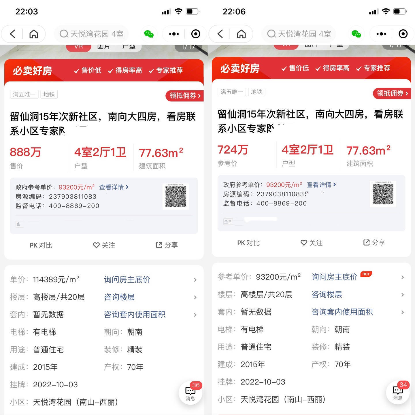 截至目前,各中介平台仍显示政府参考价,部分低于参考价挂牌的房源则直接显示业主真实报价。