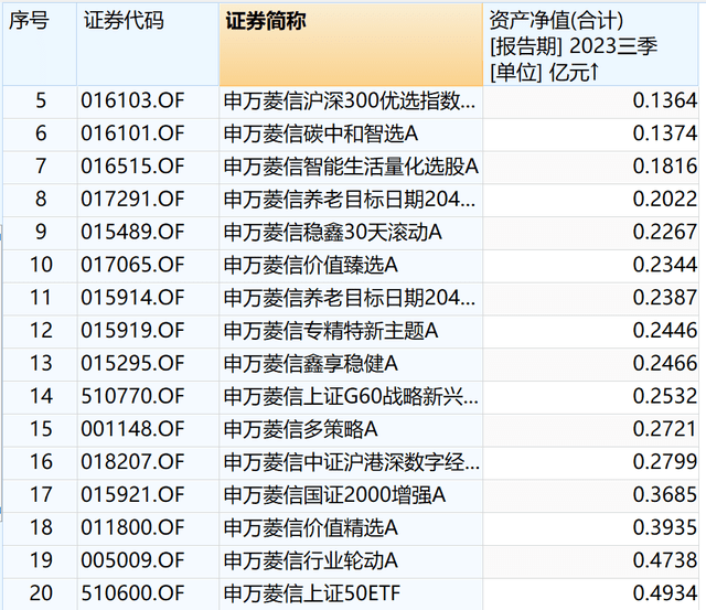 此外,截至2023年9月30日末,申万菱信基金旗下有20只基金(多种份额合并计算)净资产低于5000万元,可以说公司旗下的“迷你基金”扎堆。这些“迷你基金”如果后市管理不善,业绩下滑,也可能面临清盘风险。