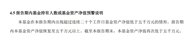 申万菱信价值臻选刚刚发布的三季报显示,该基金在三季度曾出现过连续20个工作日基金净资产低于5000万元的情况,不过三季度期间基金净资产又恢复至5000万元以上,而在三季度末,基金净资产又再次低于5000万元。