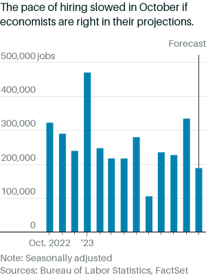 由于对酒店业员工的需求下降以及汽车罢工对制造业的打击,美国10月份的非农就业增长可能会比9月份的惊人增速放缓。