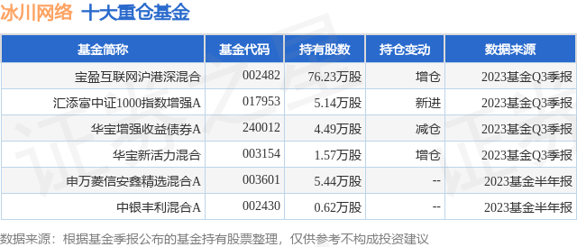 根据2023基金Q3季报公募基金重仓股数据,重仓该股的公募基金共4家,其中持有数量最多的公募基金为宝盈互联网沪港深混合。宝盈互联网沪港深混合目前规模为5.08亿元,最新净值1.725(11月2日),较上一交易日下跌2.71%,近一年下跌34.95%。该公募基金现任基金经理为赵国进。赵国进在任的基金产品包括:宝盈核心优势混合A,管理时间为2021年12月3日至今,期间收益率为-40.84%;宝盈资源优选混合,管理时间为2022年2月19日至今,期间收益率为-40.84%;