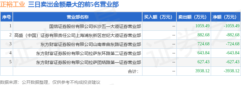 沪深交易所2023年11月3日公布的交易公开信息显示,正裕工业(603089)因有价格涨跌幅限制的日价格振幅达到15%的前五只证券,非ST、*ST和S证券连续三个交易日内收盘价格涨幅偏离值累计达到20%的证券登上龙虎榜。此次是近5个交易日内第2次上榜。