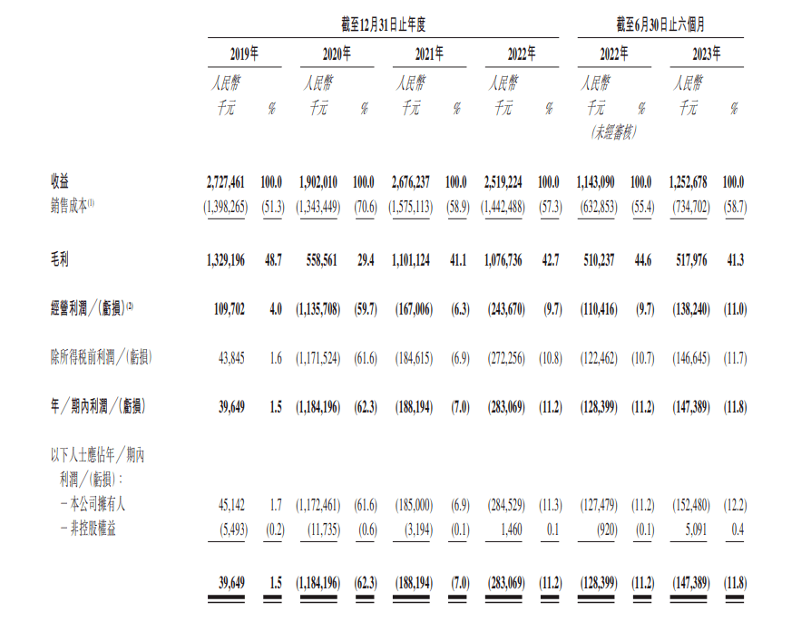 根据招股书显示,2019年、2020年、2021年、2022年四个财政年度和2023年前六个月,友宝在线的营业收入分别为27.27亿 、19.02亿、26.76亿、25.19亿和12.53亿元人民币,相应的净利润分别为0.40亿、-11.84亿、-1.88亿、2.83亿和-1.47亿元人民币。