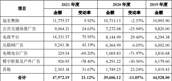 投入方面,以广告费的投入为例,招股书显示,在2019年-2021年,该支出达到4.45亿元、3.96亿元、4.8亿元,占当期公司销售费用的36.81%、35.84%、30.06%,保持在较高水平。