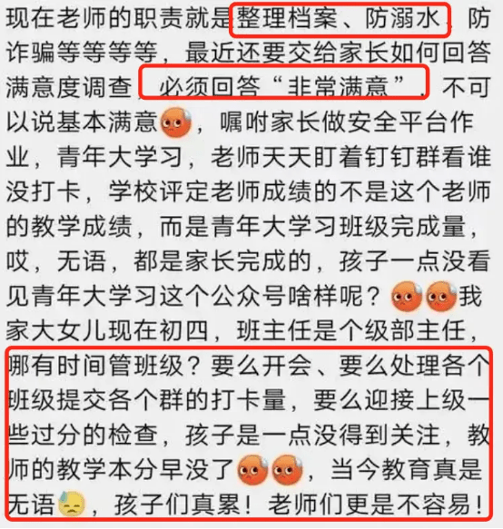 完成了,家长吐槽老师;完不成,领导批评老师。