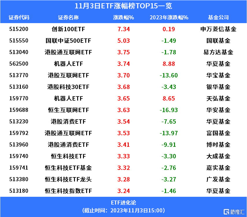 ETF方面,港股科网股延续近期涨势,易方达基金港股通互联网ETF涨3.75%,华宝基金港股互联网ETF涨3.7%。机器人板块爆发,华夏基金机器人ETF、天弘基金机器人ETF分别涨3.74%、3.65%。
