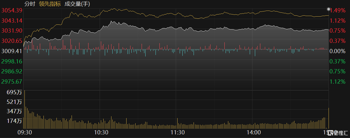 今日A股大盘高开高走,三大指数集体翻红,深证指数及创业板指涨幅超过1%。沪指涨0.71%报3030点,深证成指涨1.22%,创业板指涨1.47%。两市近3900股上涨。