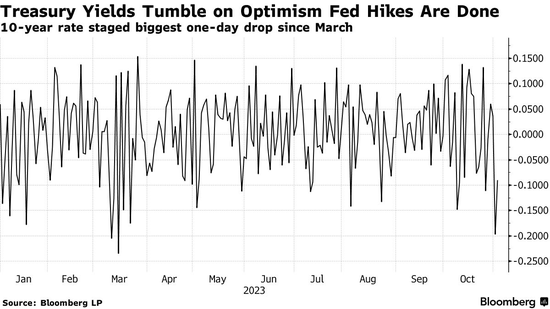 但美债也面临财政部为弥补联邦预算赤字而大举发债的压力,尽管早些时候公布的标售计划略低于预期,引发了当前的涨势。与此同时,美联储发出的利率可能会保持在高位的信息意味着,交易员对2024年年中降息的预期可能为时过早。