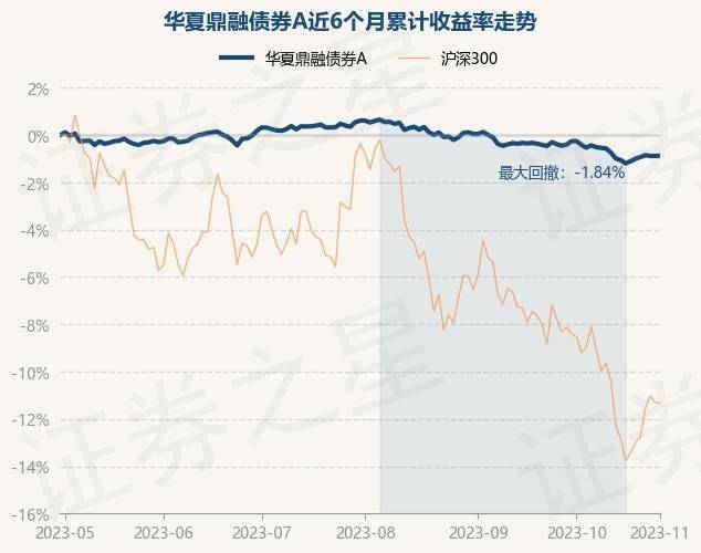 证券之星消息,11月3日,华夏鼎融债券A最新单位净值为1.0288元,累计净值为1.2658元,较前一交易日上涨0.04%。历史数据显示该基金近1个月下跌0.56%,近3个月下跌1.41%,近6个月下跌0.84%,近1年下跌1.15%。该基金近6个月的累计收益率走势如下图: