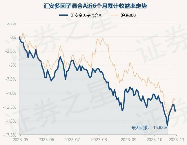 证券之星消息,11月3日,汇安多因子混合A最新单位净值为1.3464元,累计净值为1.3764元,较前一交易日上涨1.07%。历史数据显示该基金近1个月下跌2.99%,近3个月下跌7.16%,近6个月下跌12.95%,近1年下跌4.07%。该基金近6个月的累计收益率走势如下图: