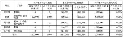 2、增持计划实施情况:截至2023年11月2日,董事长李化春先生通过深圳证券交易所证券交易系统集中竞价交易方式累计增持本公司股份525,500股,成交金额1,200,099元;副董事长兼副总经理郭健先生通过深圳证券交易所证券交易系统集中竞价交易方式累计增持本公司股份528,300股,成交金额1,200,059元;董事、总经理兼董事会秘书刘公直先生通过深圳证券交易所证券交易系统集中竞价交易方式累计增持本公司股份505,700股,成交金额1,200,113元;董事黄炳涛先生通过深圳证券交易所证券交易系统集中竞价交易方式累计增持本公司股份528,600股,成交金额1,200,223元;财务总监张小虎先生通过深圳证券交易所证券交易系统集中竞价交易方式累计增持本公司股份524,500股,成交金额1,200,030元。上述人员合计增持2,612,600股,合计成交金额6,000,524元,本次增持计划已实施完成。
