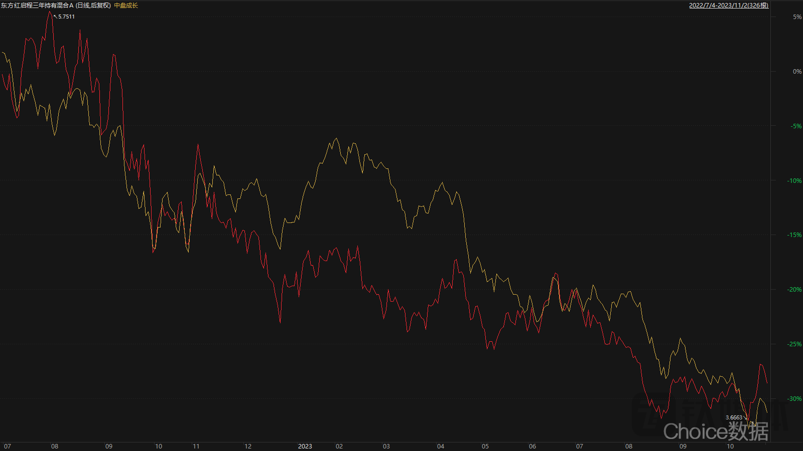 2022年7月,傅奕翔开始担任东方红启程三年持有混合A的基金经理,在此之前,其代表作华泰保兴成长优选A(005904)曾在1年221的时间里录得49.51%的回报;