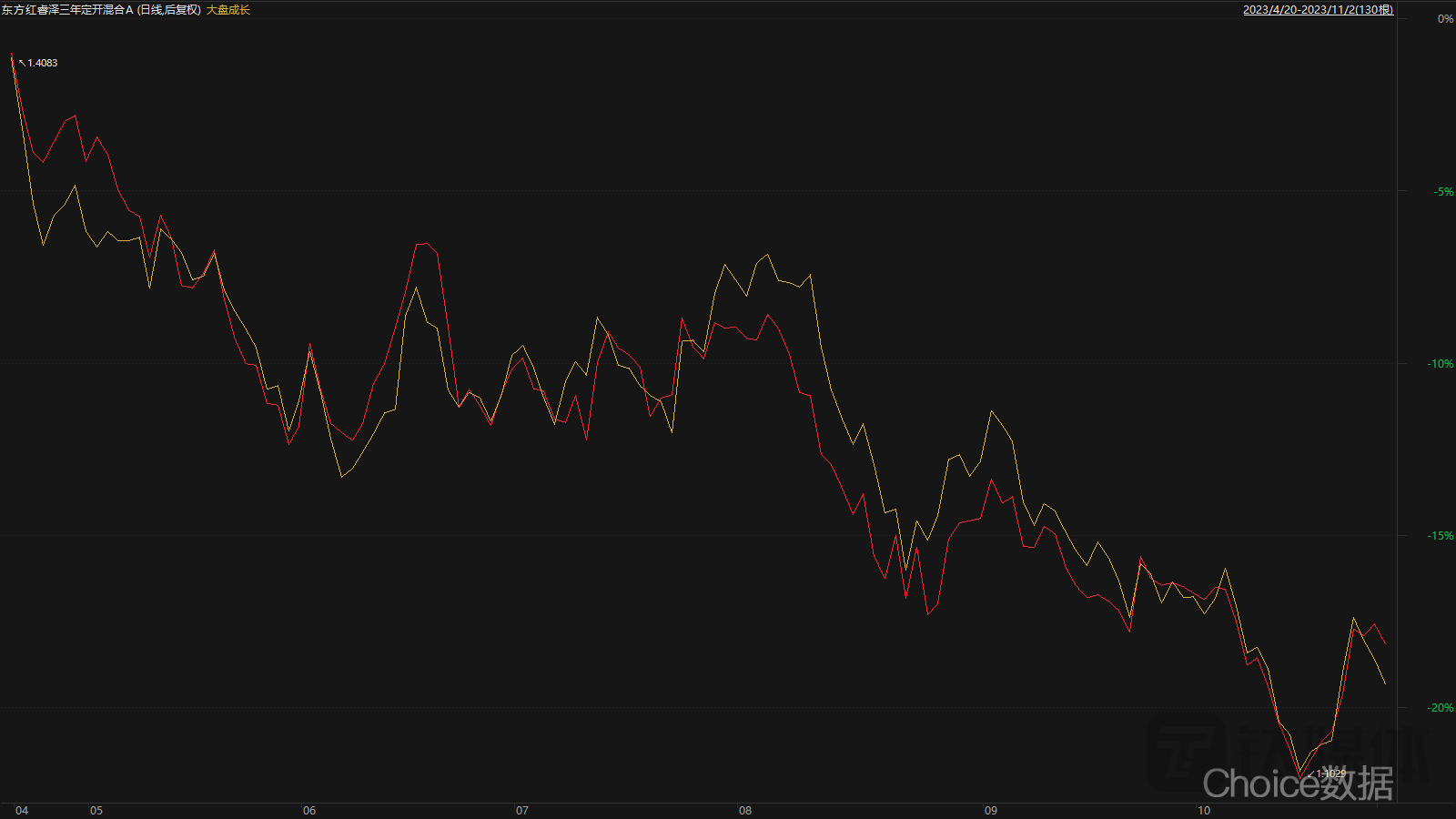 2023年6月,苗宇开始担任东方红睿泽三年定开混合A的基金经理,在此之前,其代表作广发竞争优势混合A(000529)曾在7年262天的时间里录得198.12%的回报;