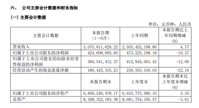 财报显示,今年上半年,华熙生物营收约为30.76亿元,同比上涨4.77%,净利润约为4.25亿元,同比减少10.27%;扣非净利润约为3.6亿元,同比减少12.69%。