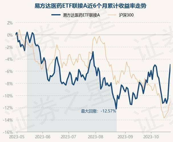 证券之星消息,11月1日,易方达医药ETF联接A最新单位净值为1.059元,累计净值为1.059元,较前一交易日下跌0.39%。历史数据显示该基金近1个月上涨1.55%,近3个月下跌0.08%,近6个月下跌5.5%,近1年下跌6.06%。该基金近6个月的累计收益率走势如下图: