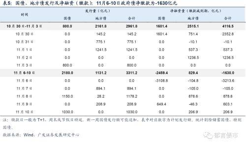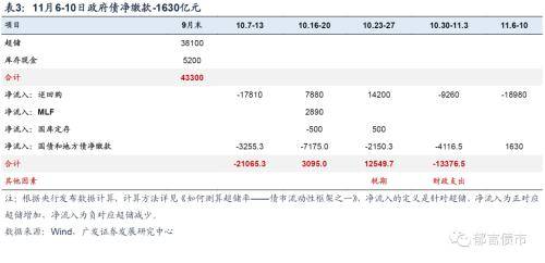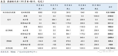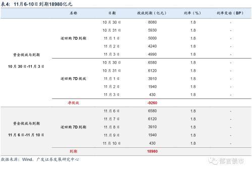 11月6-10日,逆回购到期18980亿元,政府债净缴款-1630亿元。