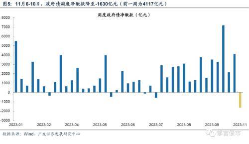 按缴款日计,11月6-10日政府债净缴款(缴款剔除到期)为-1630亿元。