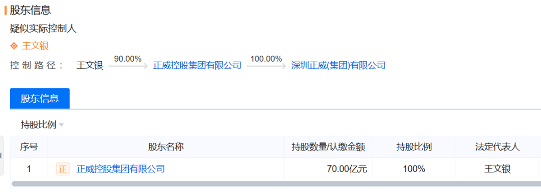 这70亿元股权对应的可是深圳正威100%股权,王文银为实际控制人。