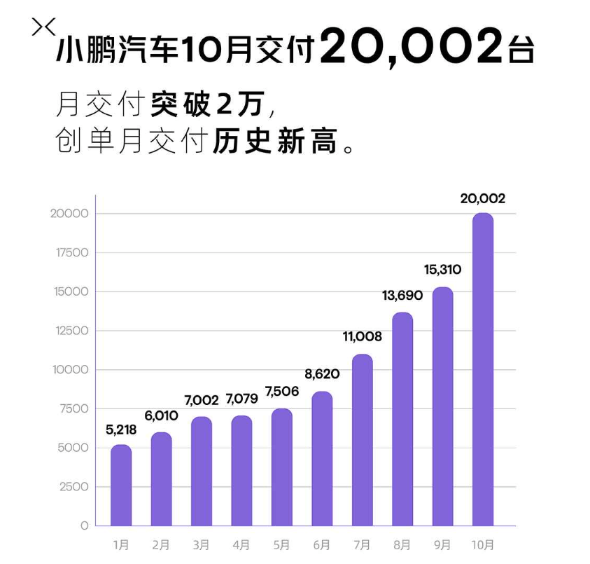 NO.2:小鹏汽车,月度销量首次突破2万辆