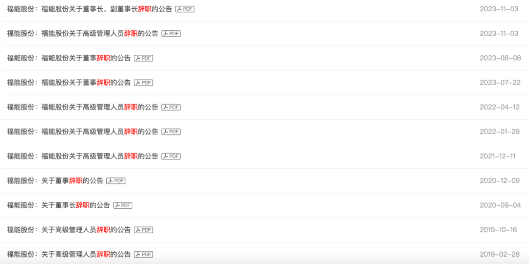 图为福能股份辞职公告情况