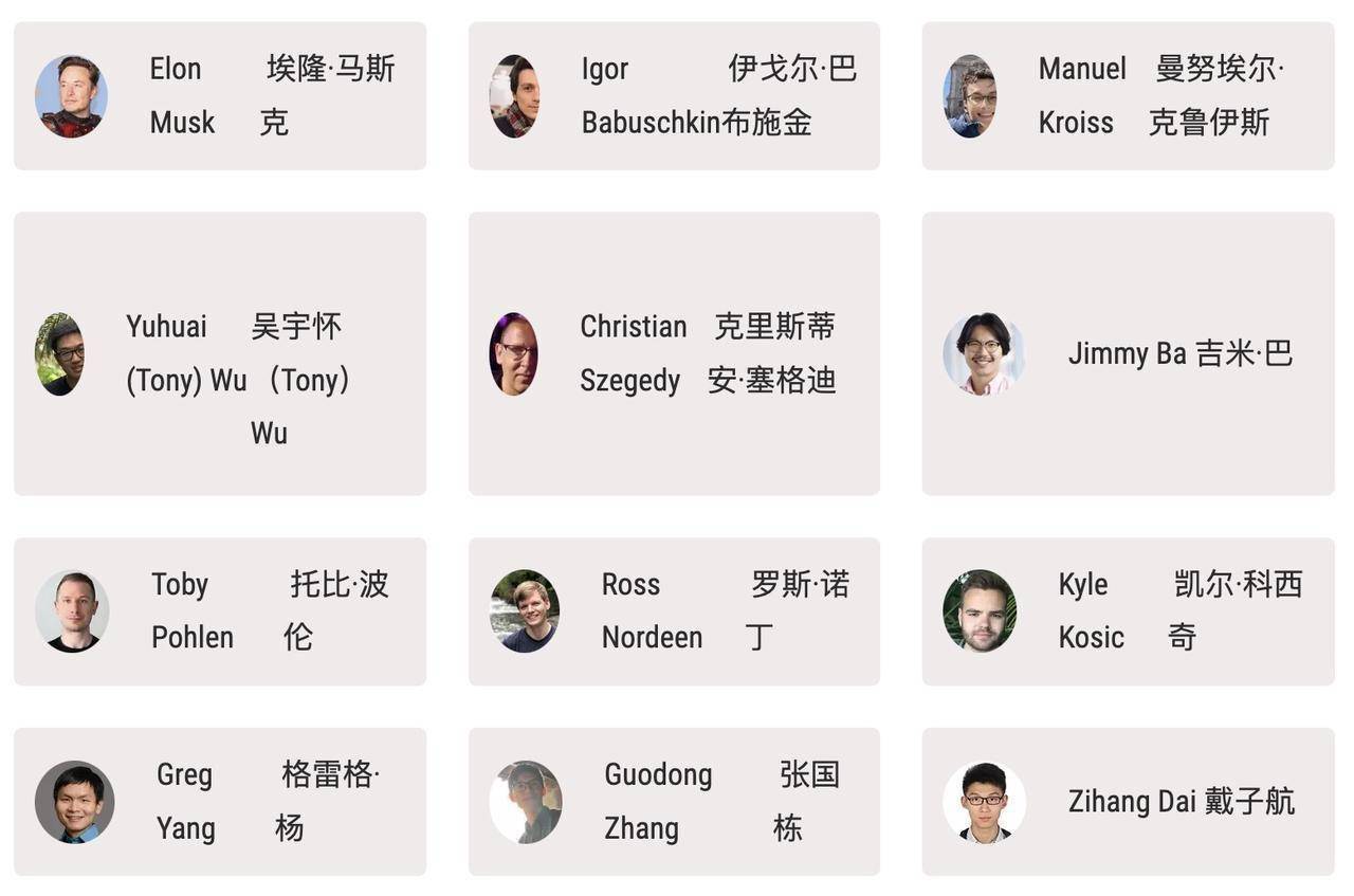 xAI 的官网也详细介绍了拥有 12 名核心成员的初创团队。除了马斯克以外,其他 11 名成员的以及他们的背景分别如下: