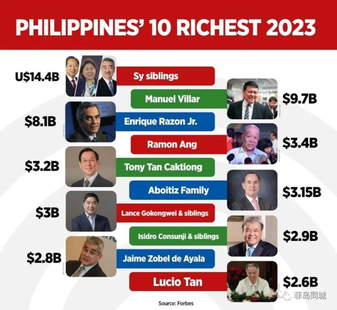 据《2023福布斯菲律宾富豪榜》显示,闽商在榜单中占据了重要地位。前十名中有五位祖籍来自泉州,他们的财富总值高达数十亿美元。