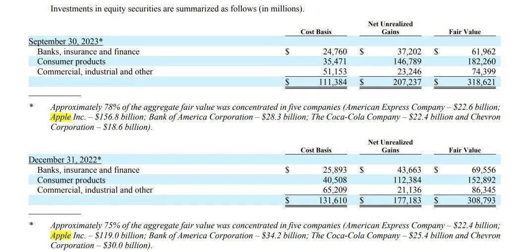 财报显示,伯克希尔的前五大重仓股在第三季度未发生变化。