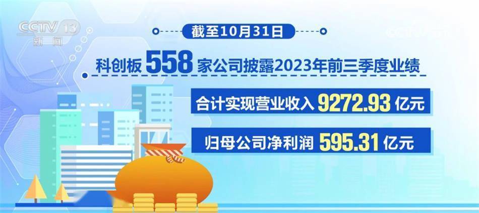上海证券交易所数据显示,截至10月31日,科创板558家公司披露2023年前三季度业绩,合计实现营业收入9272.93亿元,归母公司净利润595.31亿元。具体来看,超六成公司实现营业收入同比增长,其中有60家公司营业收入规模增长同比超过50%;净利润方面,超七成公司实现盈利,228家公司实现净利润同比增长,其中有100家公司净利润规模增长同比超50%。此外,科创板公司前三季度毛利率平均达到42%,大幅领先于其他板块。