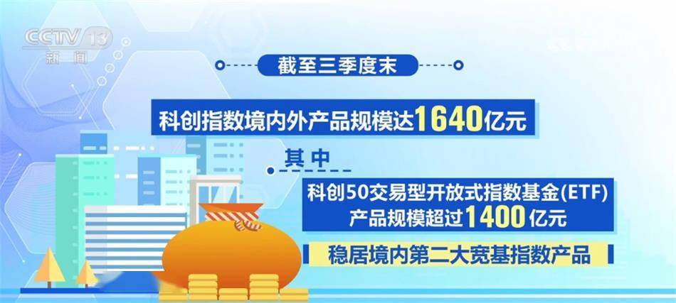 数据显示,截至三季度末,科创指数境内外产品规模达1640亿元,其中,科创50交易型开放式指数基金(ETF)产品规模超过1400亿元,稳居境内第二大宽基指数产品。
